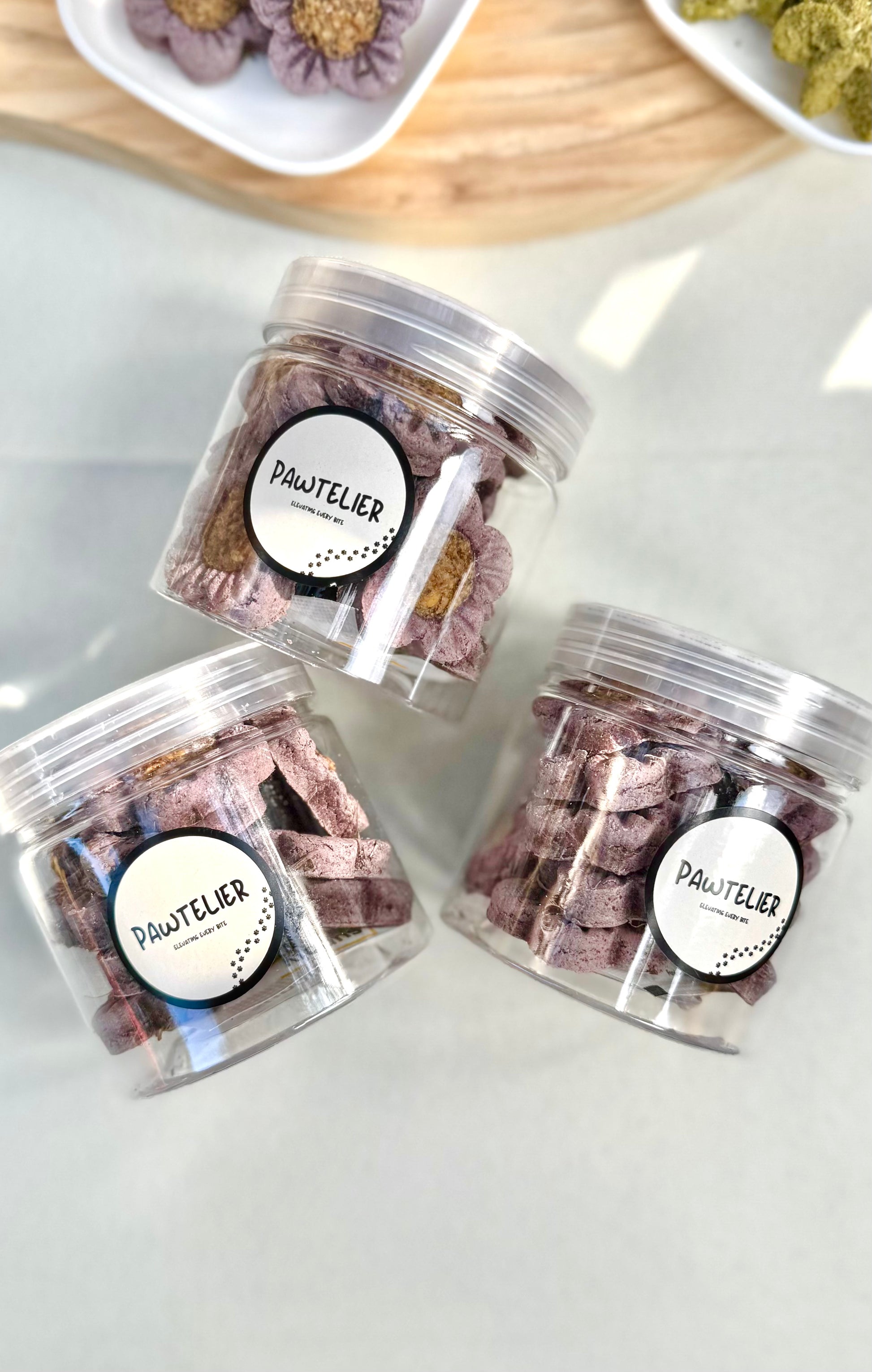 Our Minty Blueberry Cookies are a nutritous treat made to freshen up our pet's breath by using mint and basil leaves. The seed fillings in the middle are blended for optimal absorption and are a great source of fiber, healthy fats & antioxidant.